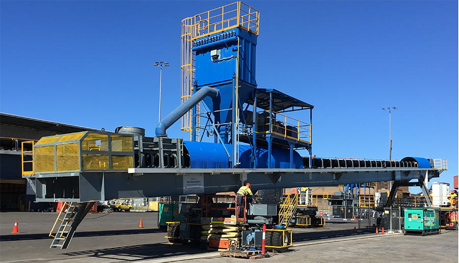 通過提升機(jī)將物料提升,降低尾車的供料高度